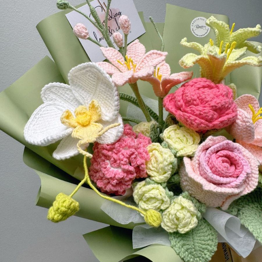Explore crochet bouquets made with care and heart. From bright sunflowers to soft lilac tulips, each piece is crafted to bring joy to any moment. Discover the full collection and find the perfect bouquet for every occasion.