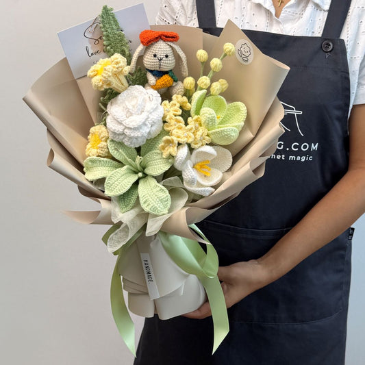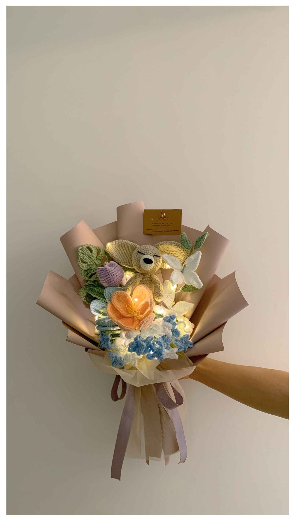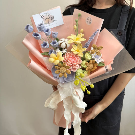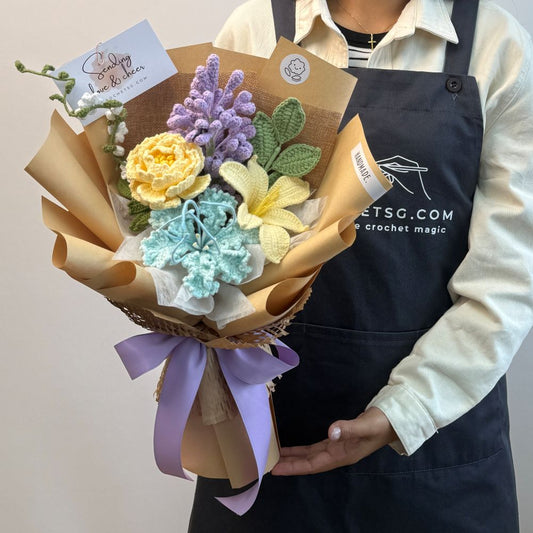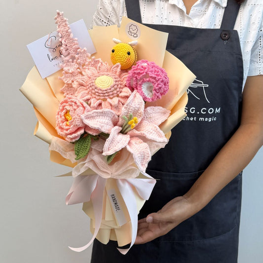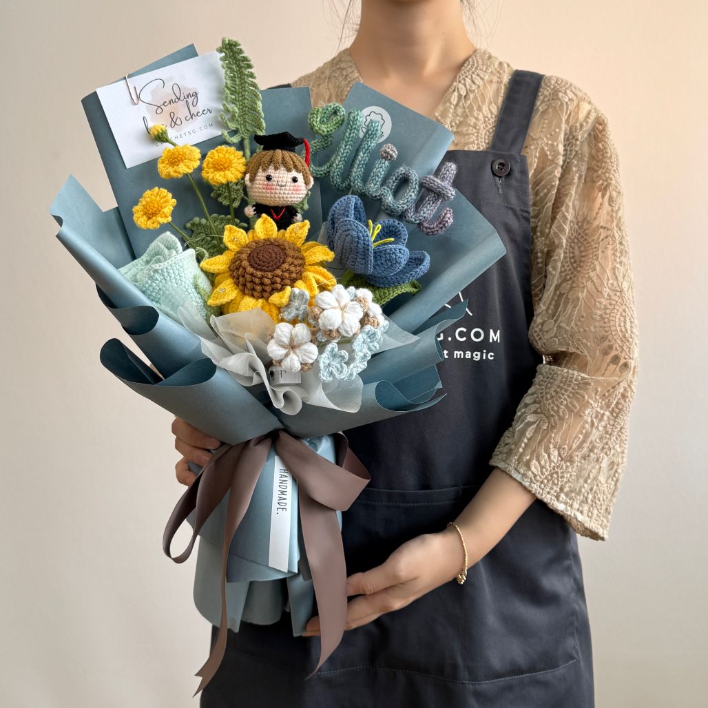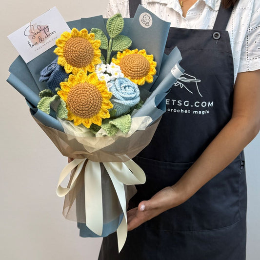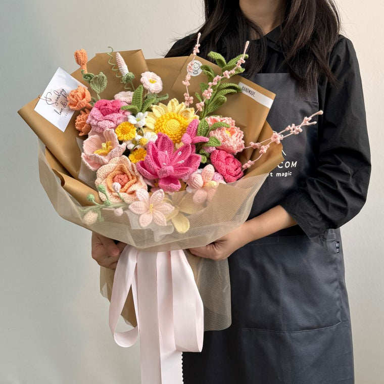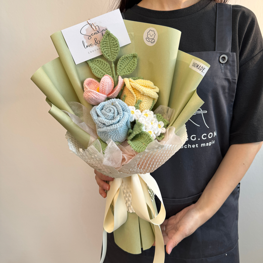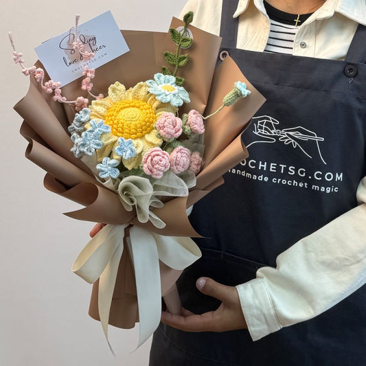 Explore crochet bouquets made with care and heart. From bright sunflowers to soft lilac tulips, each piece is crafted to bring joy to any moment. Discover the full collection and find the perfect bouquet for every occasion.