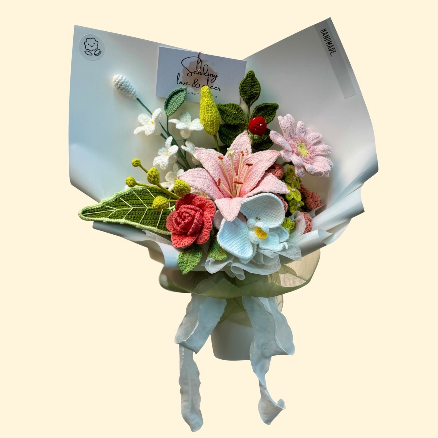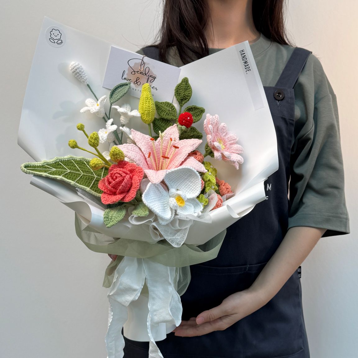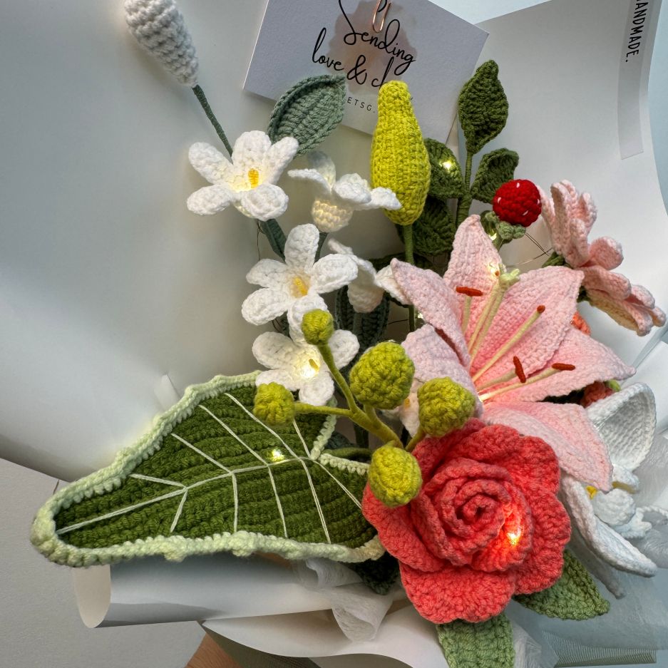 Bring the calm and beauty of a lush tropical garden into any space with Palm Breeze, a handcrafted crochet flower bouquet that captures the essence of nature in full bloom. Thoughtfully arranged with rich textures and botanical details, this bouquet is perfect for plant lovers and those who appreciate artisanal craftsmanship. Designed as a lasting alternative to fresh flowers, Palm Breeze is a keepsake that stays beautiful forever—no watering needed.