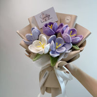 Inspired by the calming hues of your favorite taro milk tea, Taro Milk Tea is a charming crochet bouquet featuring five elegant tulips in soft purple and white tones. Minimalist yet meaningful, it’s a sweet and timeless gift for any occasion — from heartfelt celebrations to quiet moments of appreciation.