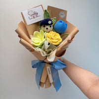 Elevate your surroundings with warmth and affection through our SPF Brown Bear with Heart Crochet Flower Bouquet. Handcrafted to perfection, this delightful bouquet features a charming brown bear with blue cap, creating a unique and heartwarming centerpiece. Paired with delicate Forget-me-not crochet flowers, this bouquet is a symbol of everlasting love and fond memories.