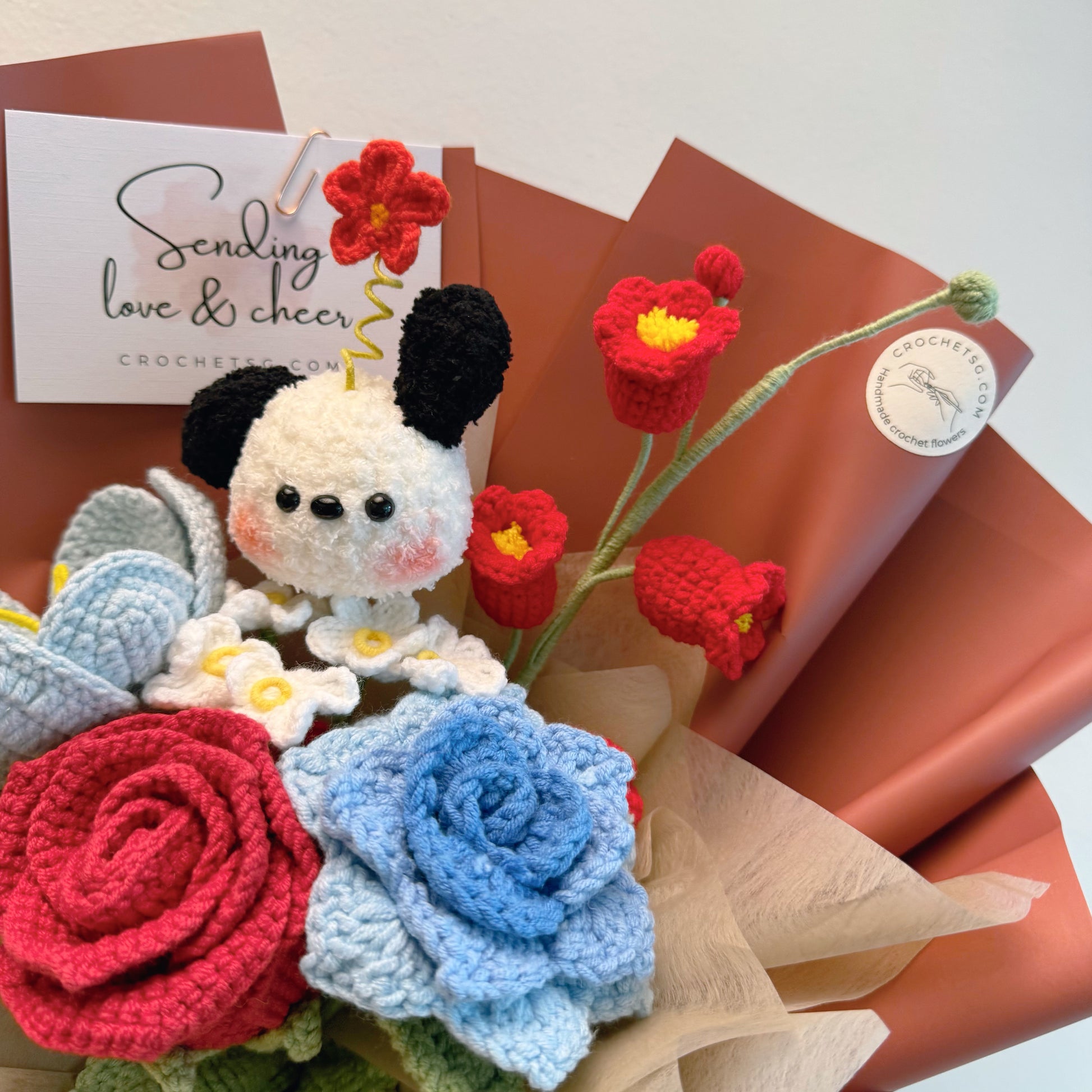 🐾 Doggy Character with Black Ears – A lovable, huggable crochet pup that adds personality and fun to your bouquet.