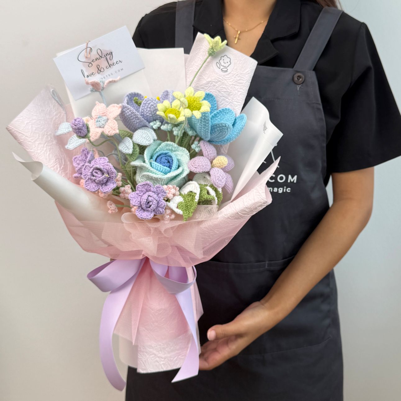 Celebrate the warmth, strength, and beauty of a mother’s love with Aurora — a breathtaking crochet flower bouquet inspired by the soft, dreamy hues of dawn. Thoughtfully handcrafted, this arrangement blends pastel elegance with vibrant charm, making it a meaningful and lasting gift this Mother’s Day.