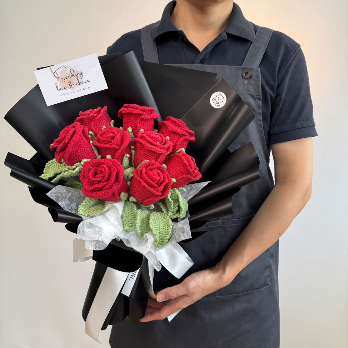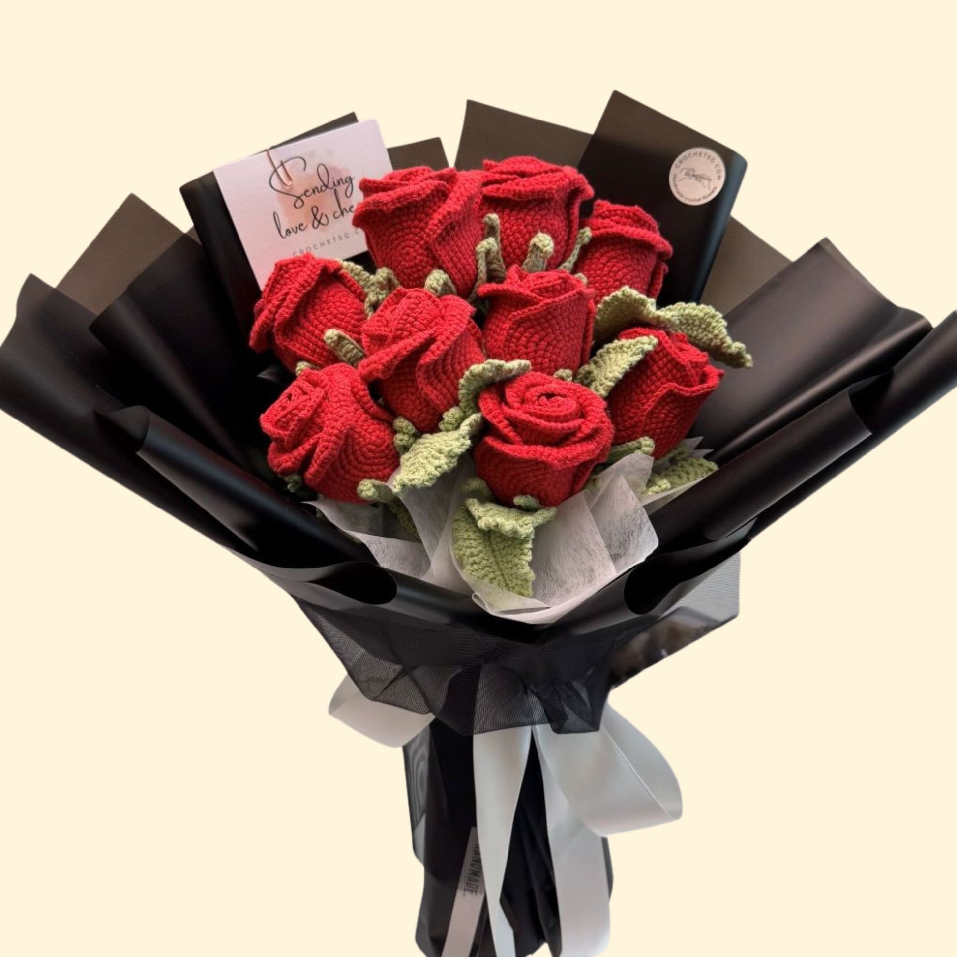 ❤️ Timeless Elegance – Crochet Red Rose Bouquet (9 Roses) 🌹
