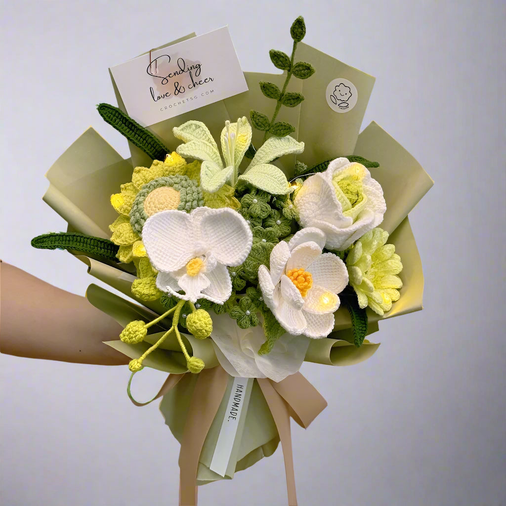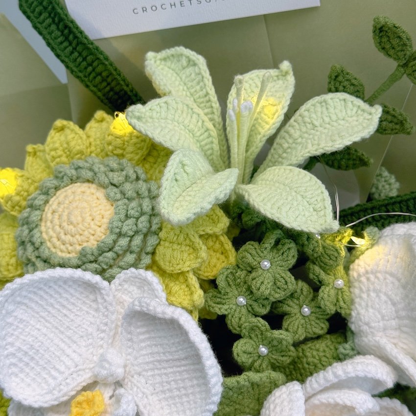 Immerse yourself in the soothing charm of Matcha Latte, a crochet flower bouquet inspired by the earthy tones and gentle elegance of matcha green. Thoughtfully designed to bring peace and freshness to any moment, this bouquet is the perfect choice for any occasion — from heartfelt celebrations to simple gestures of appreciation.