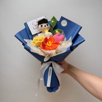 Elevate your space with a touch of bravery and beauty with our SPF Bear Crochet Flower Bouquet. Meticulously handcrafted to perfection, this unique bouquet features a bear adorned in an SPF cap and No. 1 uniform, adding a touch of heroism to your surroundings. Paired with garden roses, tulips, and eucalyptus, this bouquet is a symbol of both strength and natural beauty.