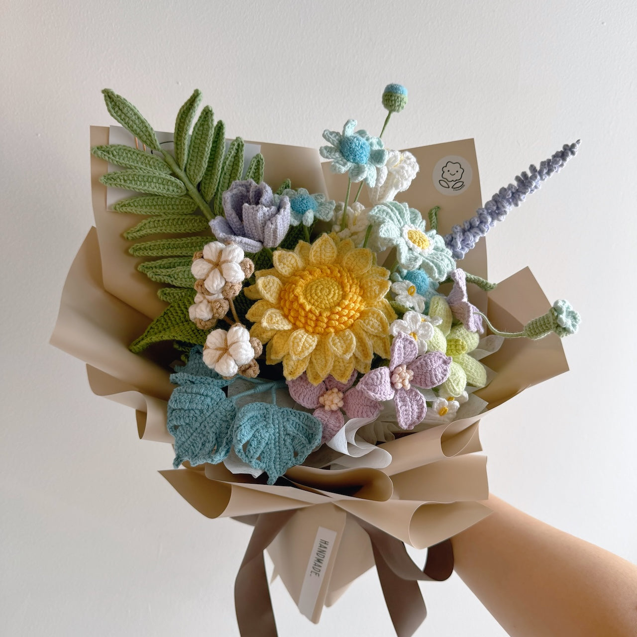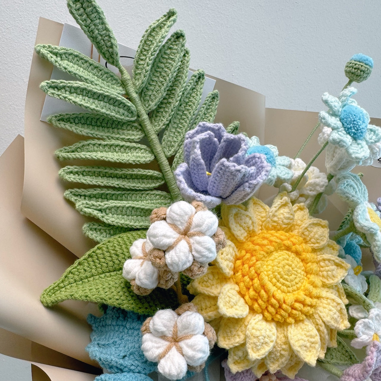 Light up hearts and spaces with Sunshine & Sherbet, a vibrant crochet bouquet inspired by golden sunlight and the refreshing sweetness of sherbet skies. Bursting with cheerful blooms and soothing pastels, this handcrafted arrangement is perfect for brightening any day, making it an unforgettable gift for birthdays, anniversaries, celebrations, or “just because” moments.