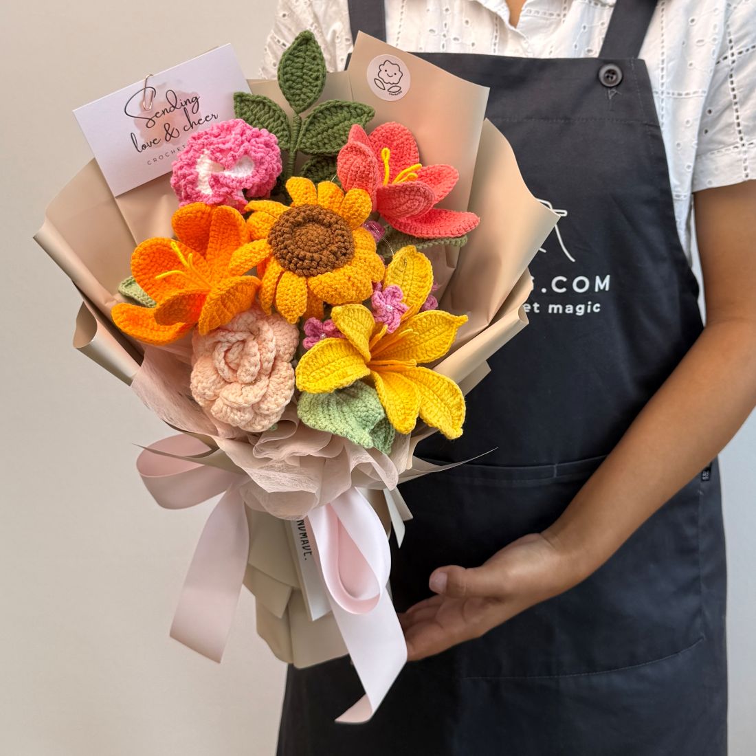 Celebrate the resilient, unwavering love of mothers with Tough Love, a beautifully handcrafted crochet bouquet that blends bold blooms and soft pastels into a striking yet heartfelt arrangement. Designed especially for Mother’s Day, this bouquet embodies appreciation, gratitude, and the gentle strength that defines every mother’s love.
